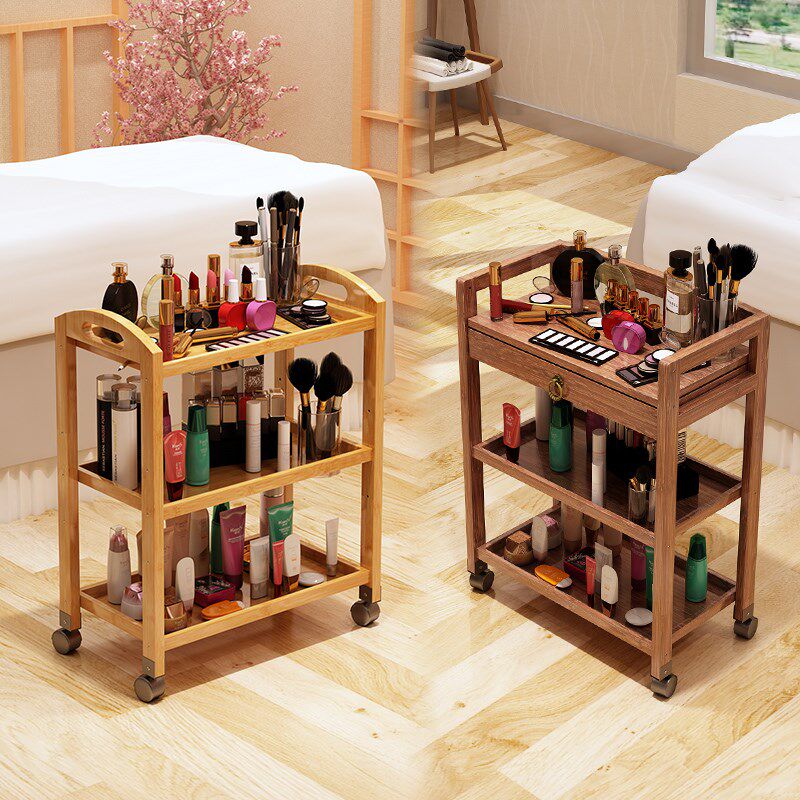 Тележка из натурального дерева, многослойная система хранения, для салонов красоты