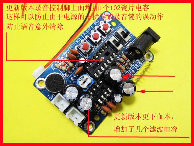 После многих пересмотров, схема была обновлена.Они изменяются на обратной связи с информацией от предыдущего покупателя.ISD1820 автоматически покрывает оригинальный голос при записи.