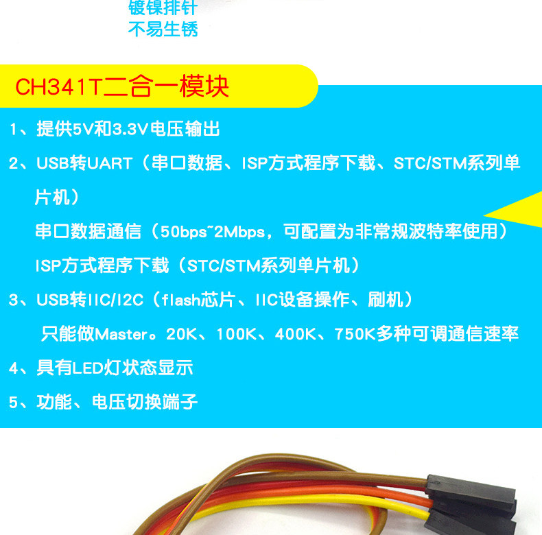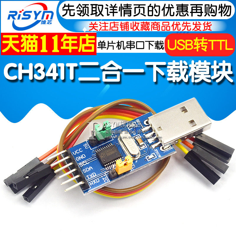 CH341T TWO -IN -ONE MODULE USB TO I2C IIC UART USB TO TTL SYNE -CHIP Microcomputer Serial Port Downloader