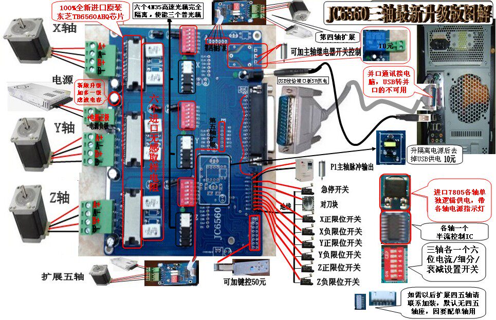 Скульптор с ЧПУ шаг в управление ключом с осиром двигателя, TB6560 с радиатором 3A