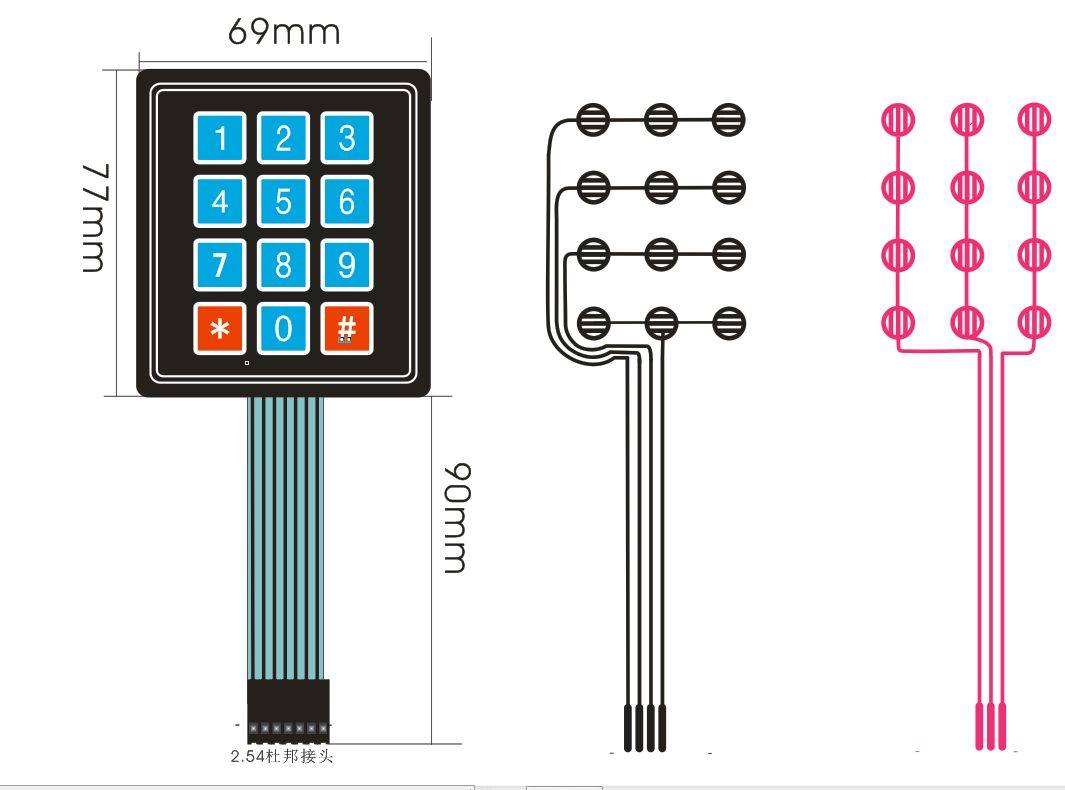 Новая клавиатура матрицы 3*4, оболочка Dupont, которая была оснащена этой клавиатурой, может быть непосредственно вставлена в одноцепочечную схему машины, которая подходит для удлинителя микрокомпьютера с одной стороны, что способствует изучению клавиатуры на периферии однопроизводительного микрокомпьютера