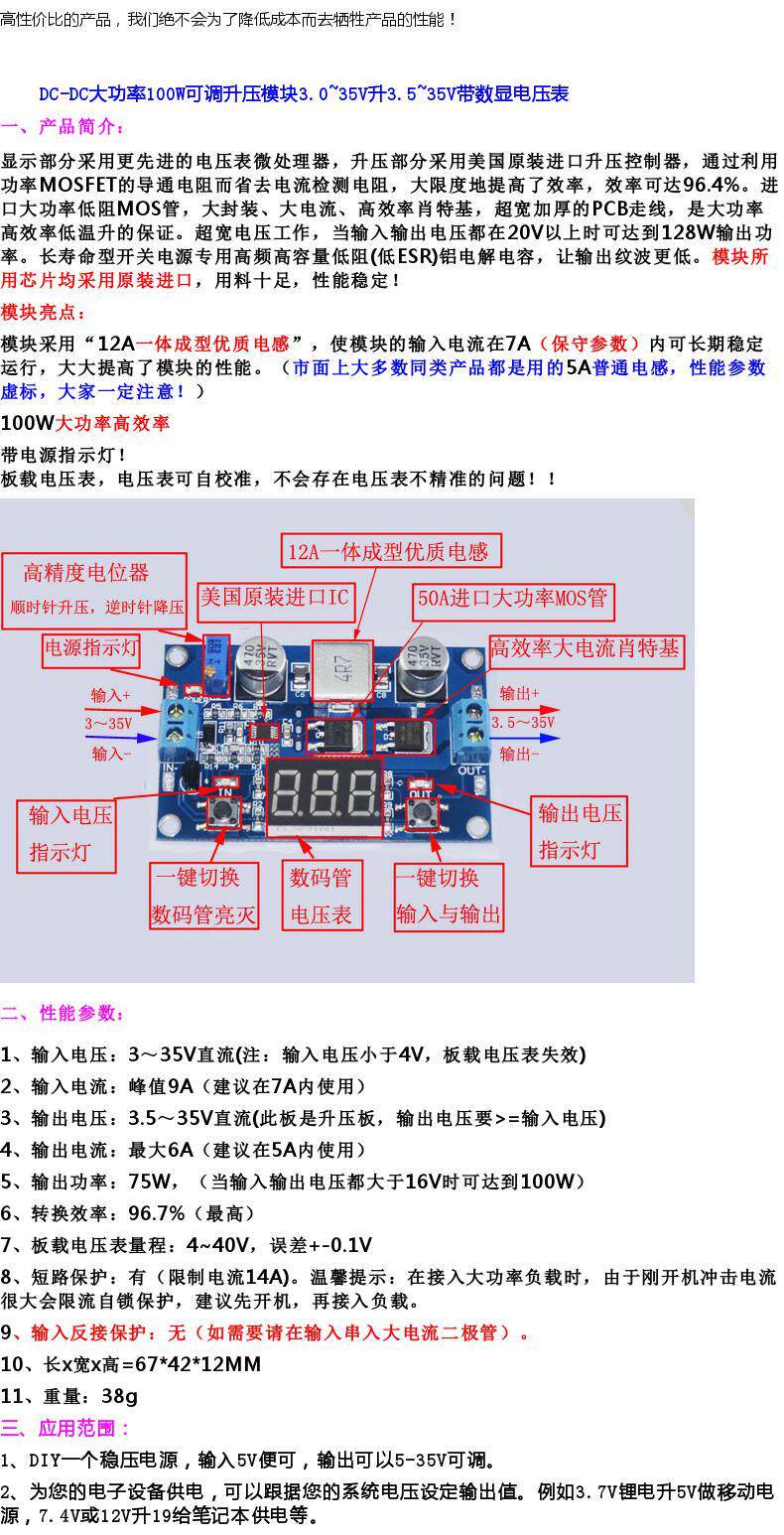 DC-DC DC напряжение напряжения модуль модуля мощности 100 Вт.