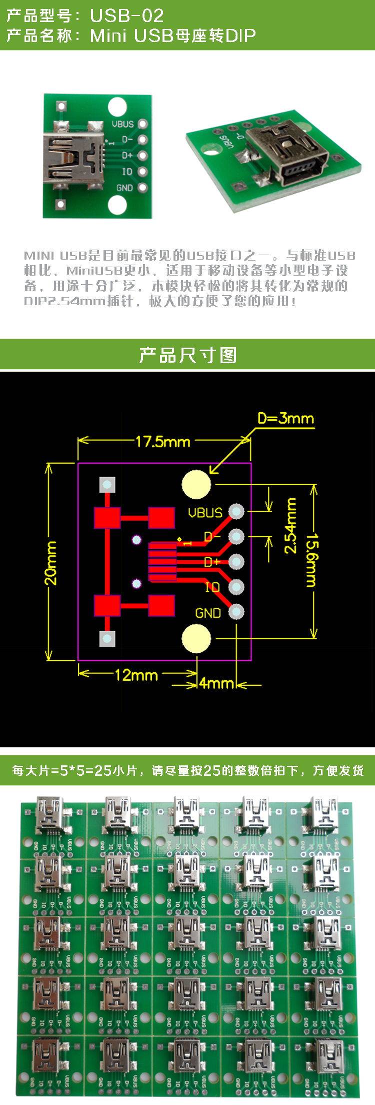 USB, чтобы погрузить место для дева, пятно Mini-5p, до 2,54 мм прямого вставки и платы сварной ротора