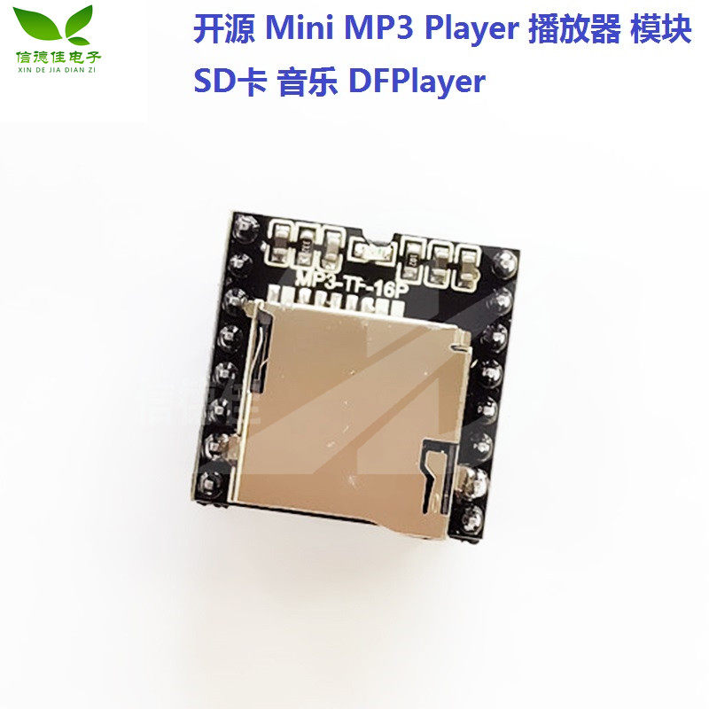 DFPlayer Mini -это маленький и низкий модуль MP3 -кости, который может напрямую опровергнуть динамик.Модуль может использоваться в одиночку в сочетании с батареей, динамиками и клавишами, или может управлять последовательными портами в виде Arduino Uno или модуля с одним микрокомпьютером с одним -хип с последовательным портом.Модуль объединяет жесткое декодирование MP3, WAV и WMA.В то же время программное обеспечение поддерживает драйвер карты TF и поддерживает файловые системы FAT16 и FAT32.Благодаря простым серийным инструкциям вы можете завершить указанную музыку и как играть в музыку.