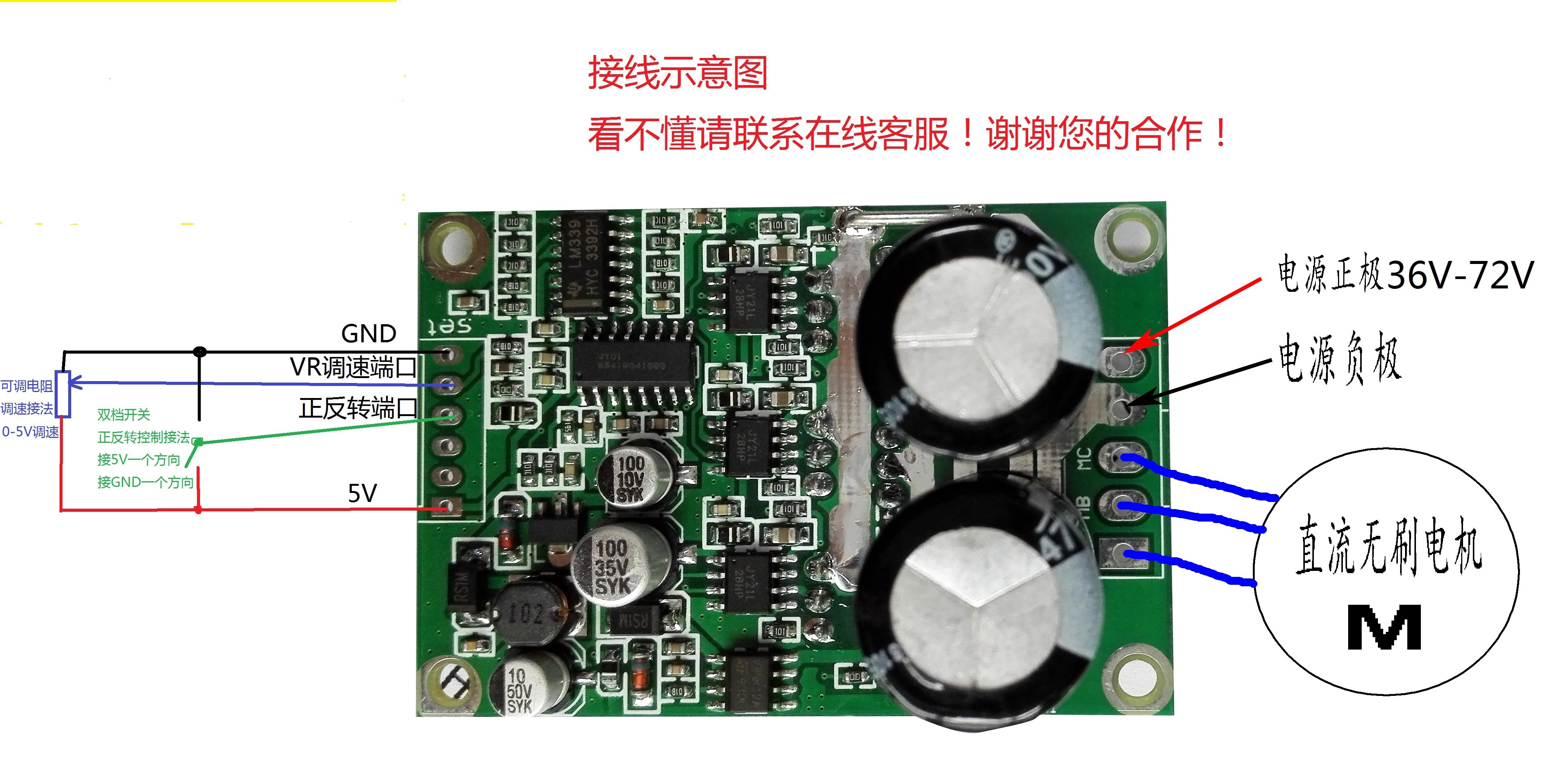 VCCПорт - это положительное входное напряжение питания36V-72V