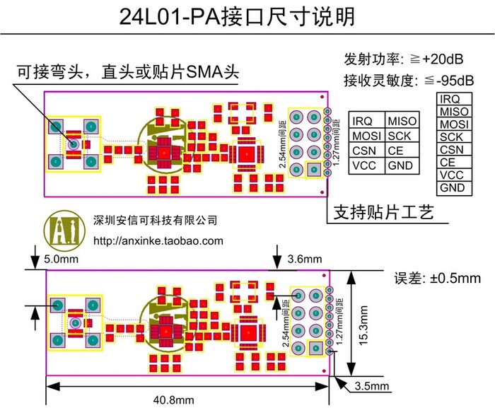 В любом интенсивном продукте клиентам необходимо добавить MCU для управления NRF24L01P+PA+LNA только через порт SPI