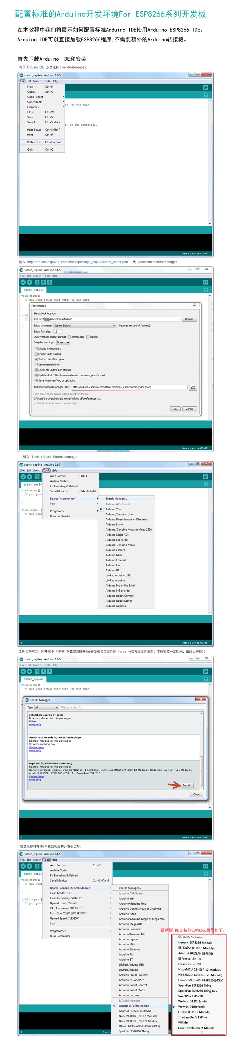 Настройте Arduino для среды разработки ESP8266 (выберите D1-MNI)