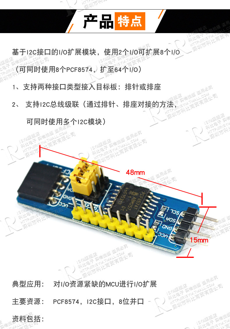 Risym PCF8574 Модуль одно -хип -микрокомпьютер ввода/вывод модуля расширения PCF8574T Модуль I2C Интерфейс