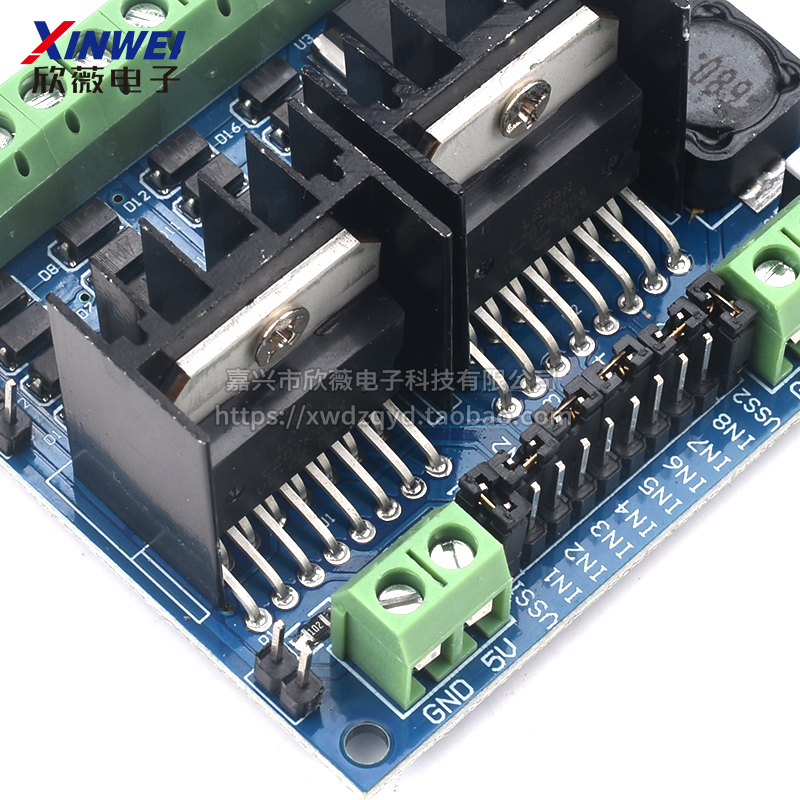 L298N -это высокий уровень и большой моторный моторный чип, созданный компанией ST.Чип инкапсулируется на 15 футов.Основные особенности: рабочее напряжение высокое, максимальное рабочее напряжение может достигать 46 В; выходной ток большой, ток пикового тока может достигать 3А, а непрерывный рабочий ток составляет 2А; номинальная мощность составляет 25 Вт.Высокий царип и большой мостовой драйвер, содержащий два моста H, может использоваться для управления двигателями постоянного тока и перцептивных нагрузок, таких как двигатели хода, реле и т. Д.; Без входного сигнала существует логическая клемма ввода мощности, которая позволяет. или запретить работу устройства, так что часть внутренней логической схемы работает при низком напряжении; сопротивление может быть обнаружено при низком напряжении; сопротивление может быть обнаружено в цепи управления.Используйте чип L298N, чтобы привести к двигателю. Чип может привести к двухфазному шагу в двигатель или четырехфазный шаг в двигатель, или он также может управлять двумя двигателями DC.