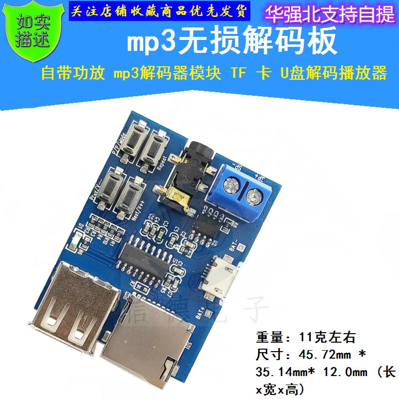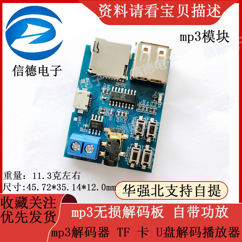 MP3 Неразрушающая доска декодирования поставляется с декодером усилителя мощности TF Card U Disk Player Type-C Micro USB