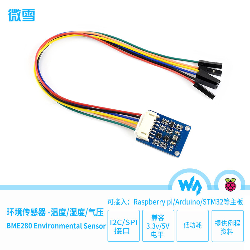 [我是一款环境传感器,可感知环境温度、湿度和大气压强,支持I2C和SPI接口,兼容3.3V/5V电平。][我尺寸小,功耗低、精度高且稳定性好,适用于环境监测、天气预测、海拔高度监测和物联网等应用场景。 ]