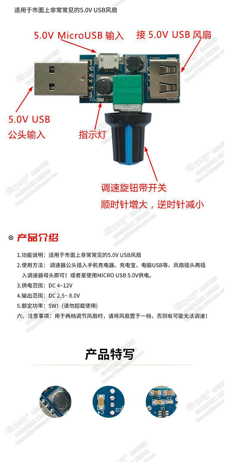 USB -регулятор вентилятора модуля модуля ветра много -нога