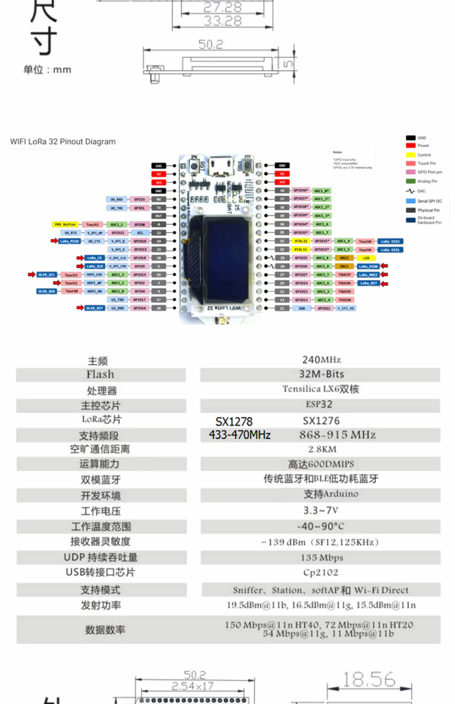 Wi-Fi/Bluetooth/Lora Node Poard Development Poard SX1262/ESP32/OLED/868-915.