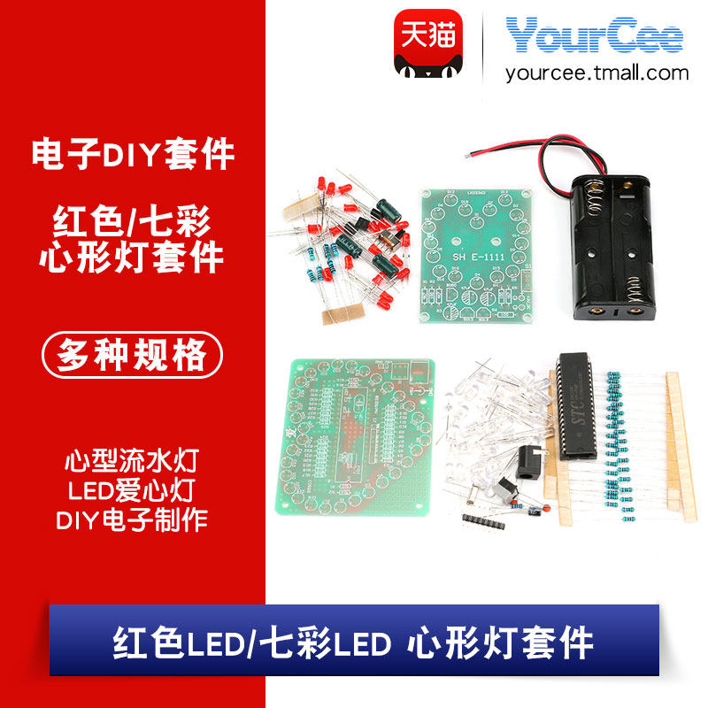 Сердечный светодиодный светодиодный набор для циркуляции/красочный блеск 51 Одиночный микрокомпьютер светодиодный световой светлый свет Электронный комплект DIY DIY