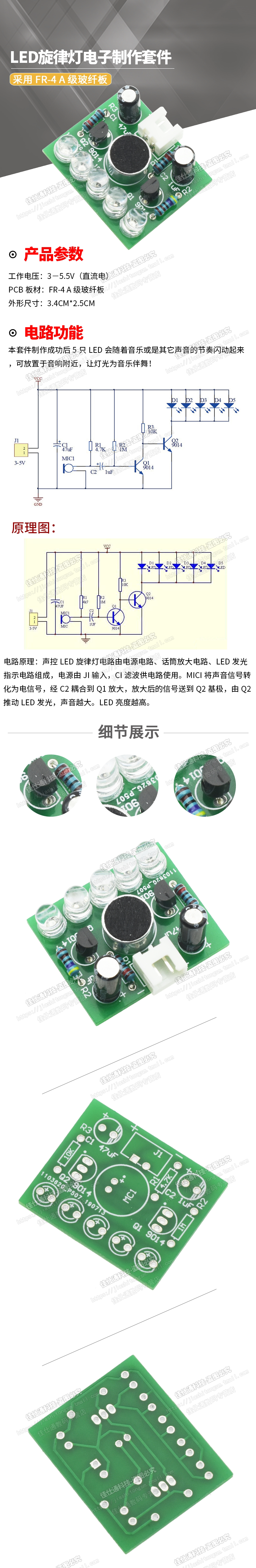 (Продажи) Звуковой контроль светодиодный светодиодный свет Электронный производственный комплект Electronics Diy Fun Product