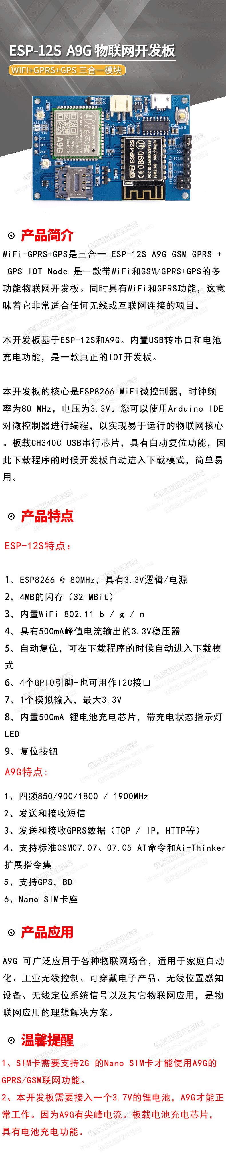 IoT Development Board ESP-12S A9G WiFi+GSM+GPRS+GPS IoT Development Poard