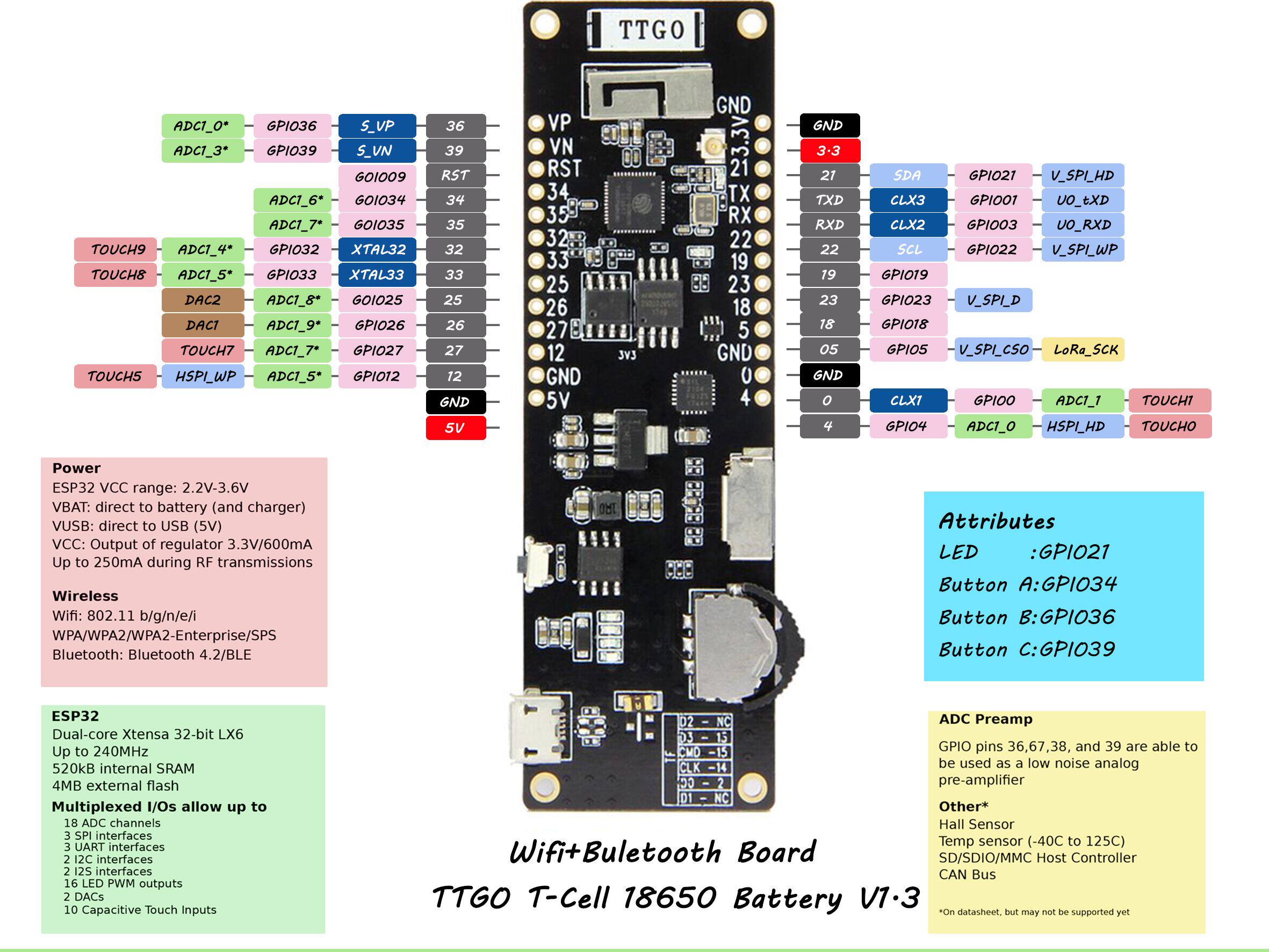 Wi -Fi+Bluetooth 18650 Seat Seat 2a Fuse ESP32 4 МБ SPI Flash Memory Sunlephat