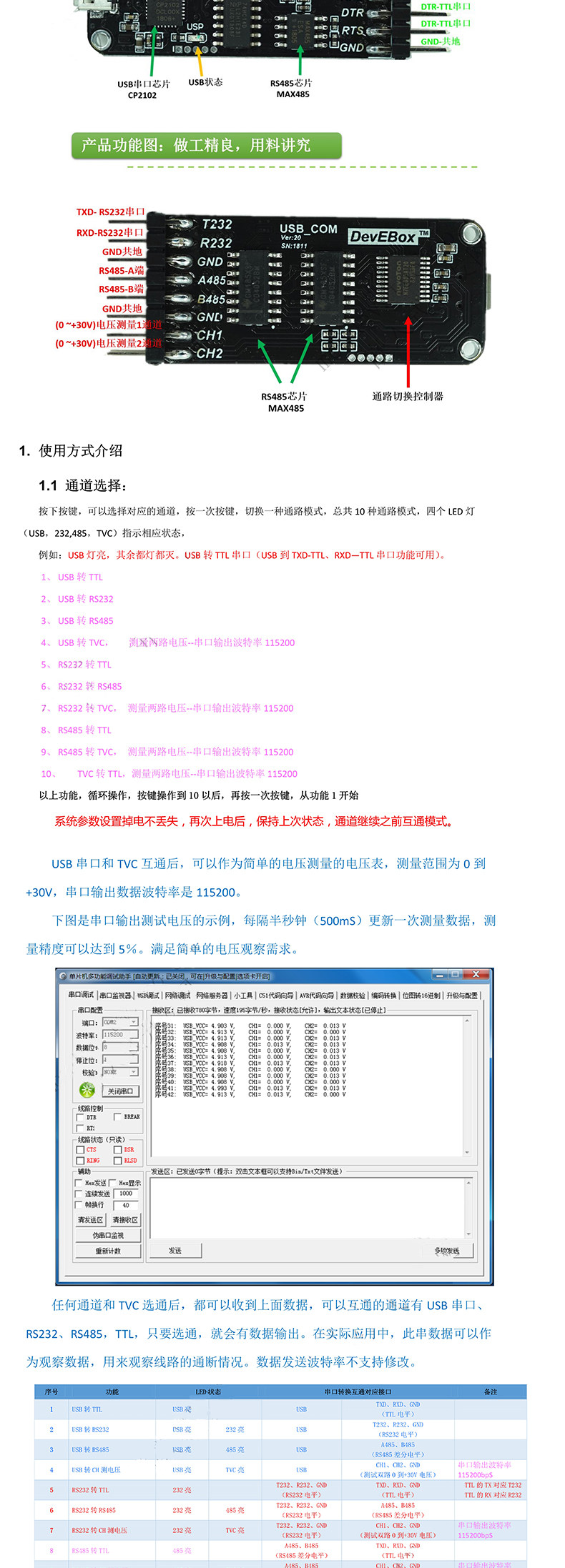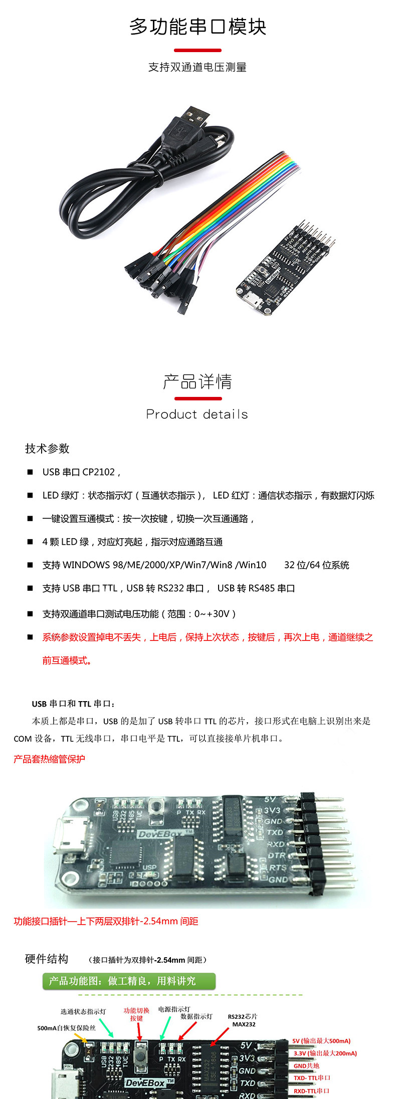 (Десять -1) Много -функциональный последовательный модуль последовательного порта CP2102 USB в TTL/ RS485/ RS232 Полная совместимость