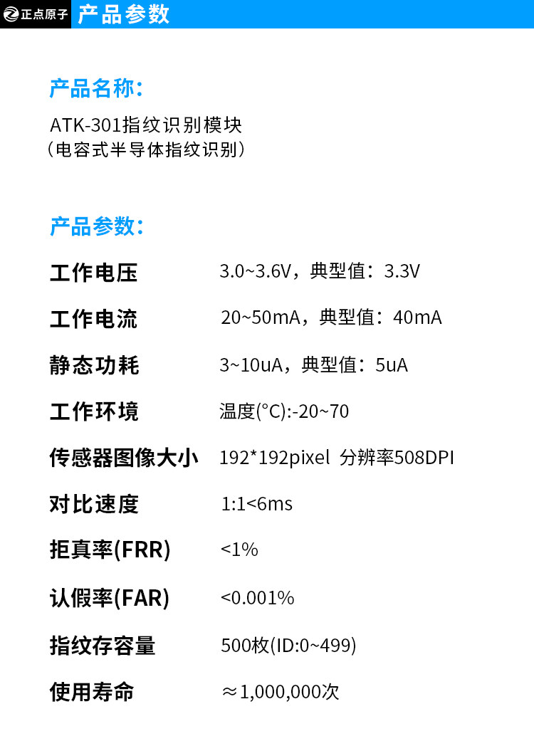 正点原子 Модуль распознавания отпечатков пальцев ATK-301 емкостный полупроводник интерфейс последовательный порт для отправки программы STM32