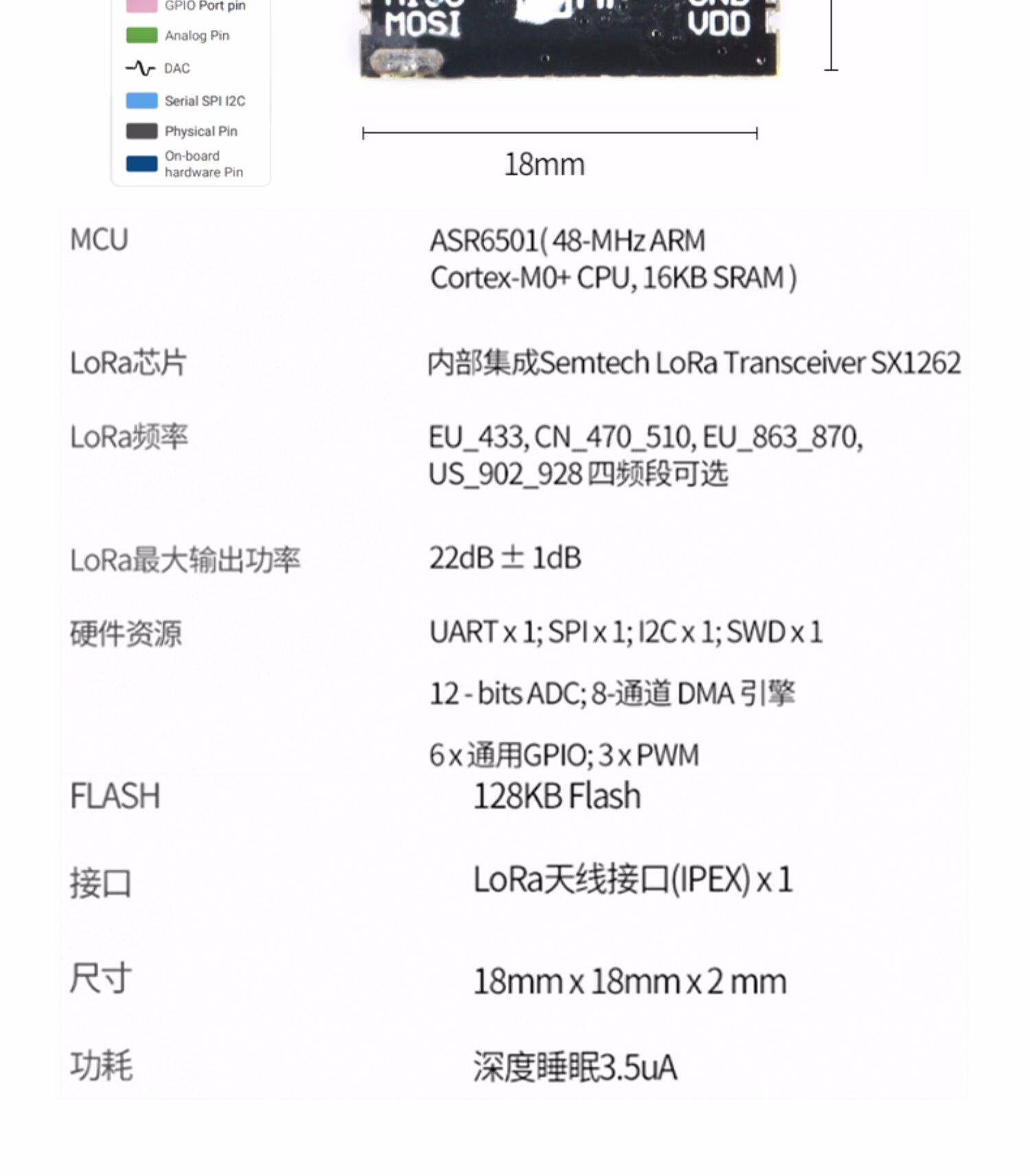 Модуль LoRa ASR6501 Интегрированная прозрачная передача LoRaWAN AT Модуль SX1262 CubeCell