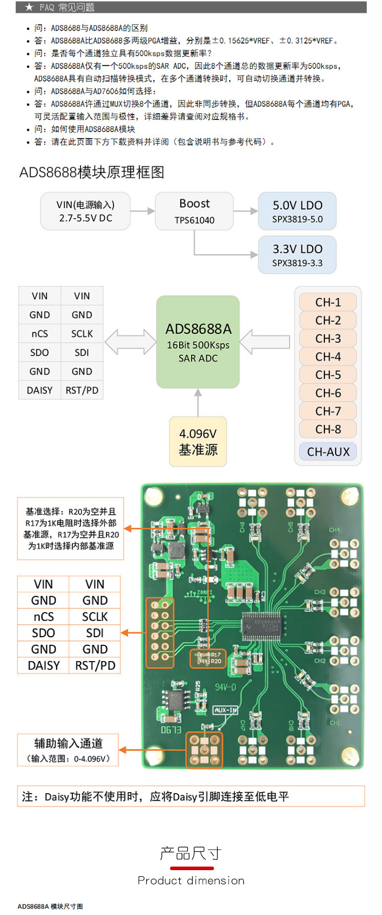 ADS8688A 16BIT/500KSPS Single/Bipolar Input 8 -х канал SAR/ADC Модуль сбора данных