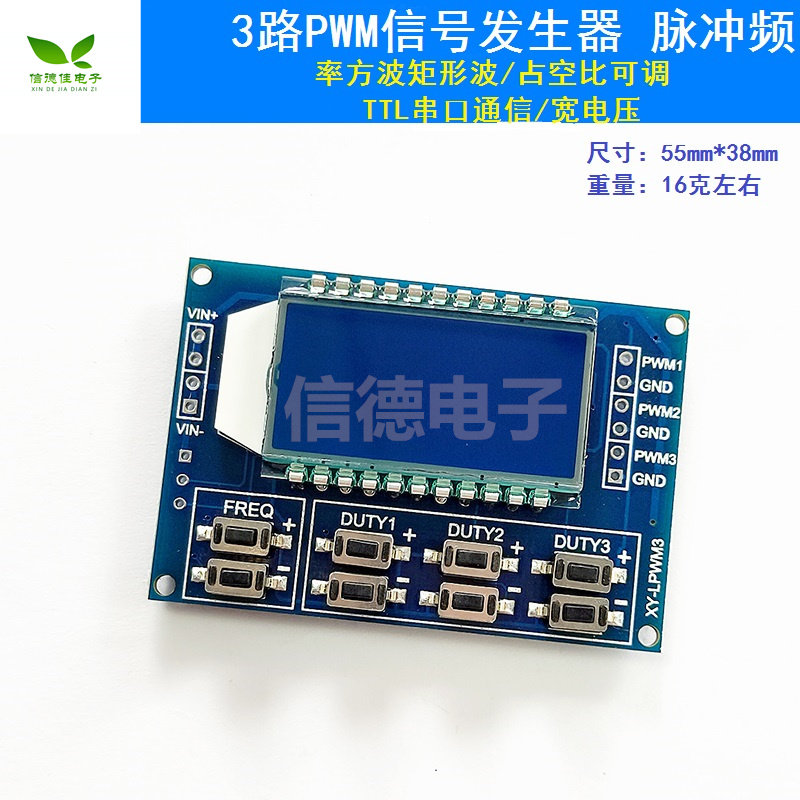 Модуль есть8Независимые ключи используются для установления частоты и соотношения обязательств, поддерживая краткосрочное нажатие (увеличение или уменьшение одного блока) и длительного давления (быстрое увеличение или уменьшение). Это очень просто. Установите автоматическое сохранение после установки параметра.