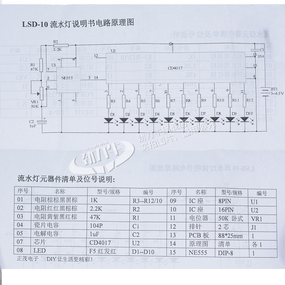 Пленочная лампа комплект NE555+CD4017 Пленочные светильники Стоипные светильники земли рассеянный электронный набор электронный набор