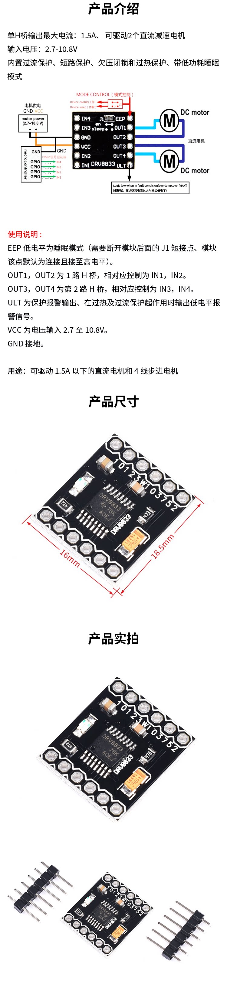 2 модуль двигателя двигателя DC 2 модуль двигателя DRV8833 Модуль двигателя двигателя