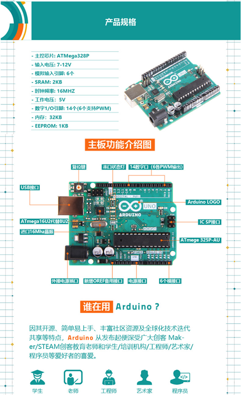 Оригинальная подлинная плата разработки uno r3 для программирования Atmega328P AVR 8-битный микроконтроллер Arduino