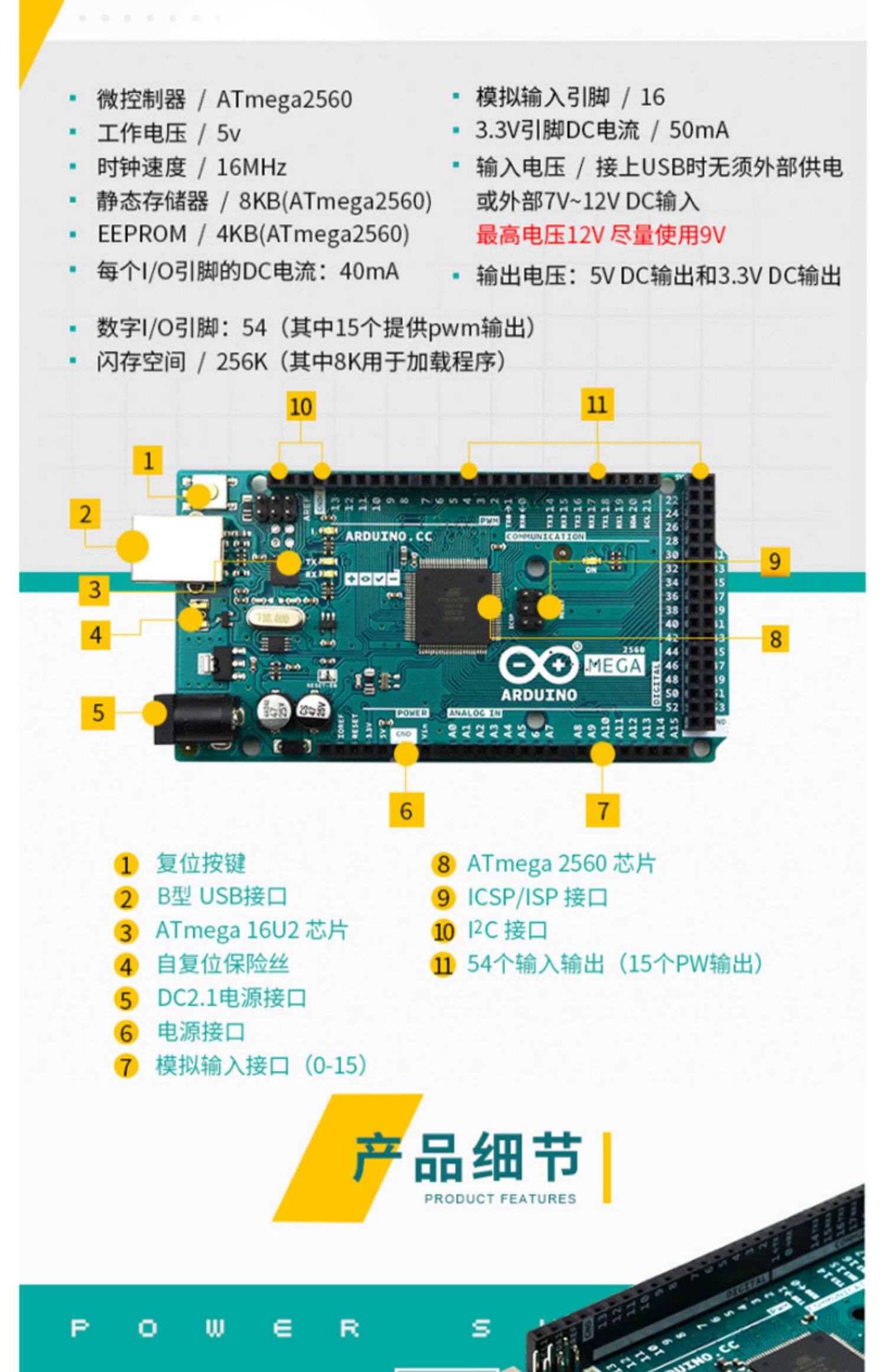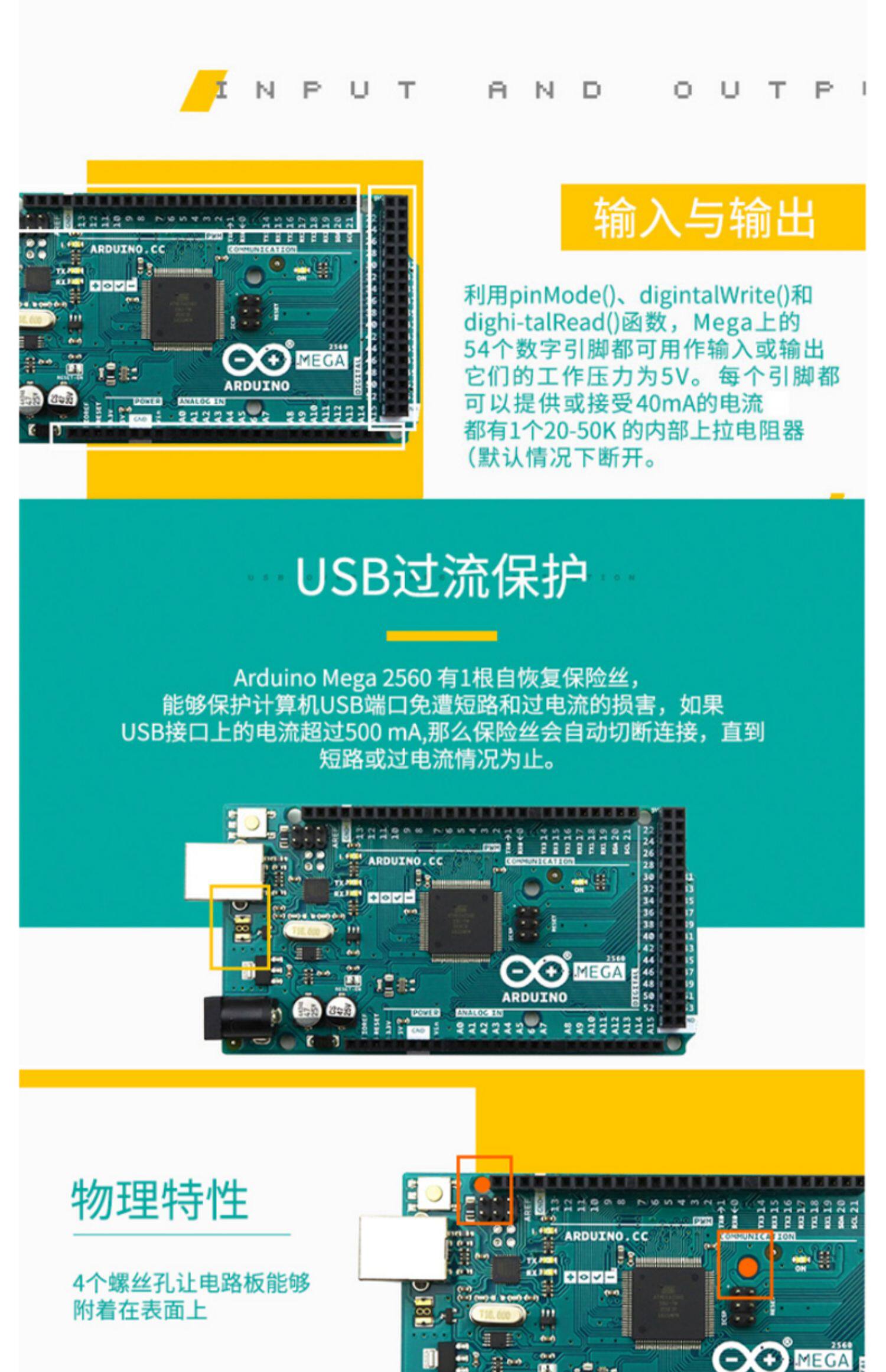 Оригинальный подлинный Arduino Mega 2560 R3 A000067 ATMEGA2560 Модуль разработки