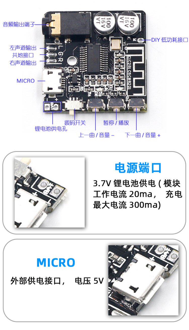 DIY Зарядка версия Bluetooth 5.0 Audio Receiver Module Mp3 Decoding Poard Then Load Load Audio Conversated Audio Modiation