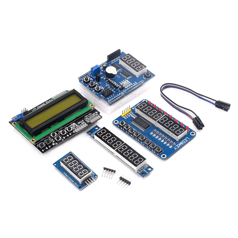 | Цвет: | 4 -Дигитный модуль дисплея цифровой трубки (1), 8 -Дигитный модуль дисплея цифровой трубки (1), Кнопка TM1638 8 -дигита модуль дисплеев цифровой трубки, LCD1602 символ жидкокристаллического входного выхода платы расширения, Многофункциональная пластина (1) отдельных микрокомпьютеров (1) |