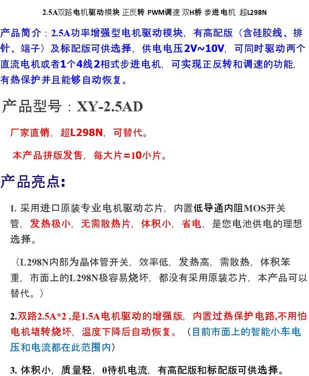 2.5A Двойной модуль двигательного привода положительный и обратная регулировка скорости ШИМ двойное h мост.