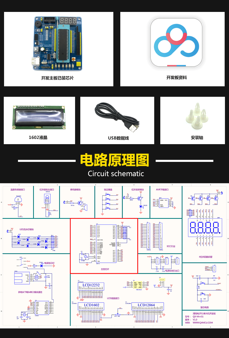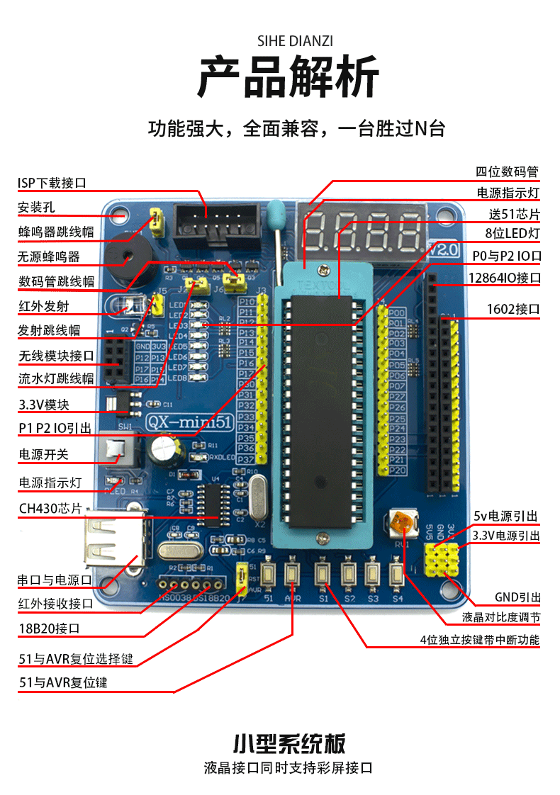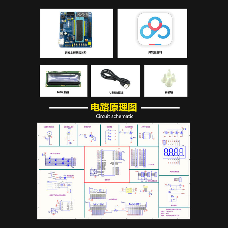 51/AVR ОДИН -КИП -микрокомпьютер Минимальный системный плата 51 Однопроизводительная плата разработки микрокомпьютеров 51 Однопроизводственная плата машинного обучения ЖК -дисплеев