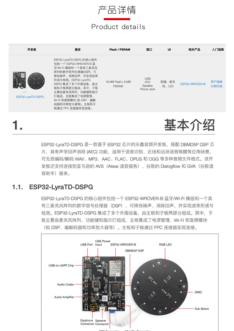 ESP32-Lyratd-DSPG Audio Development Soard с DBMD5P DSP Chip Chip распознавание голоса Wake Up