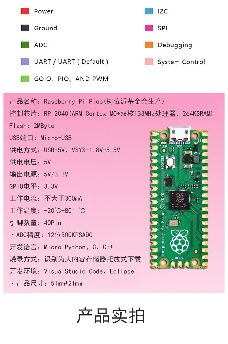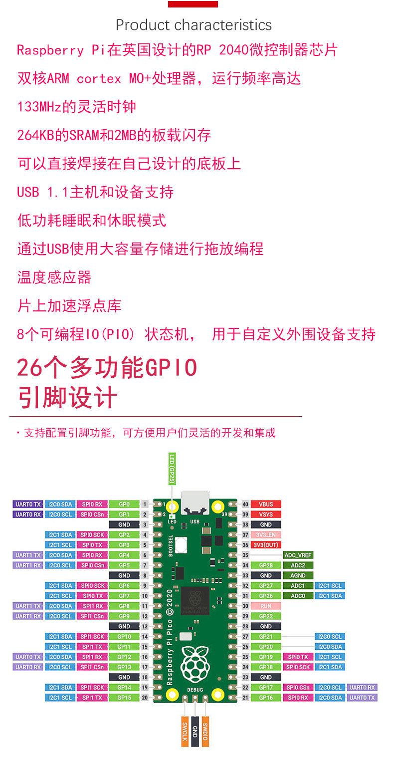 RASPBERRY PI PICO Двухъядерная плата разработки Raspberry Pi PICO RP2040 с поддержкой Mciro Python