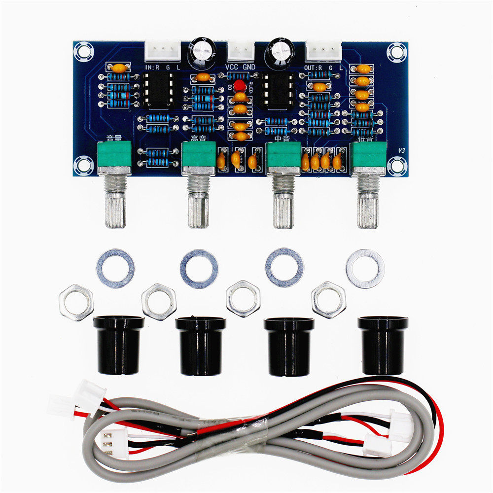Тонная плата с передним уровнем уровня подходит для использования усилителя, который может реализовать высокую, среднюю и басовую корректировку распределения звука; пусть вы получите лучший опыт звука; двойной коррек.NE5532Оригинальное напряжение питания питания импортируемого чипа - DCDC12-24V