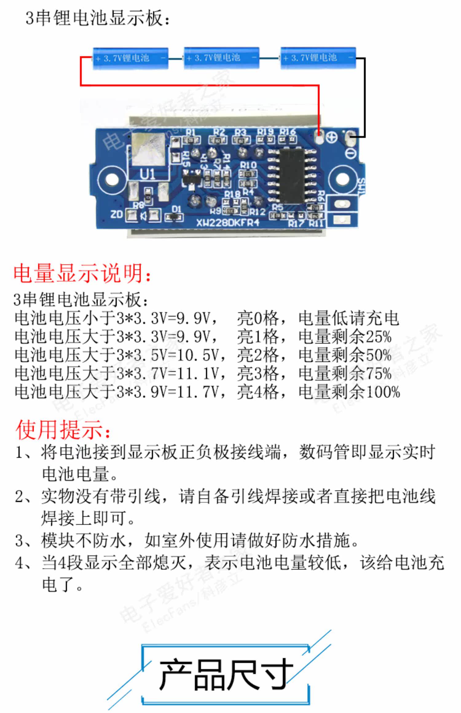 3 строки 18650 Группа лития батарея Группа Индикатор Объем электроэнергии Трехнологический процентный процентный процентный модуль дисплея Анти -коннекция защита