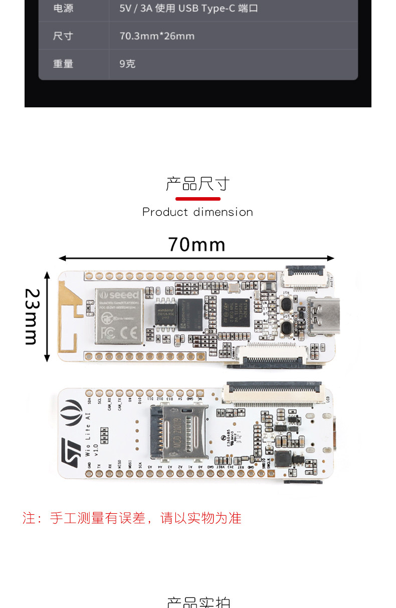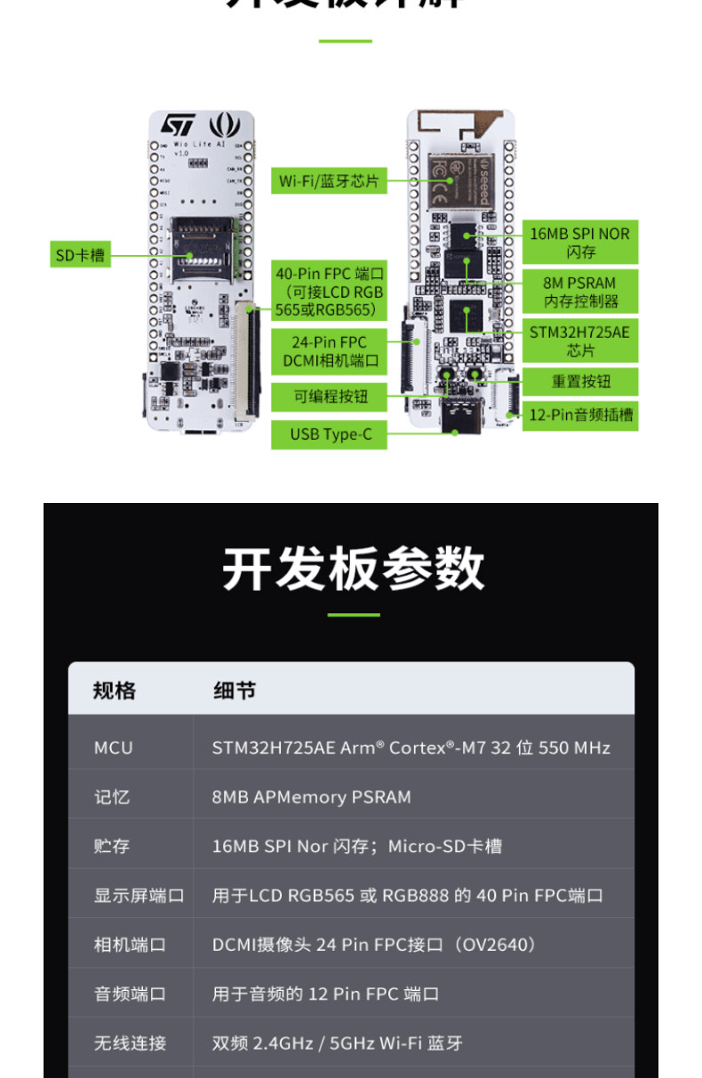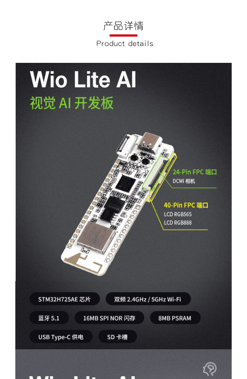 Wio Lite AI STM32H725AE AI Плата визуального развития DCMI Camera и RGB LCD