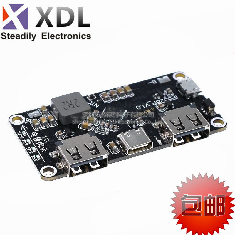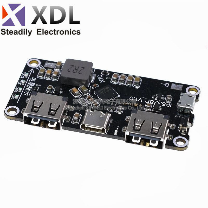 Использование британского IP5328P Mobile Power Solution, четырехслойной золотой платы, оптимизации проводки макета, поддержка различных протоколов быстрого зарядки, двусторонняя быстрая зарядка 18 Вт, в общей сложности 4 интерфейса зарядки: 2 USB-a Interfaces, 1 1 USB -C Интерфейс, 1 интерфейс Micro USB, 4 интерфейса поддерживают быструю зарядку, из которых 2 USB-A Port Support QC3.0, FCP, AFC, MTK, SFCP быстрого заряда, мощность может достигать 18 Вт; Samsung, BC1.2 Протокол ПолемПорт USB-C поддерживает двустороннюю зарядку USB PD. В то же время он совместим с FCP, AFC, SFCP Fast Logging Input, и QC3.0, FCP, AFC, MTK, SFCP Fast Forting Output.MicroUSB поддерживает FCP, AFC, SFCP быстрого заряда.