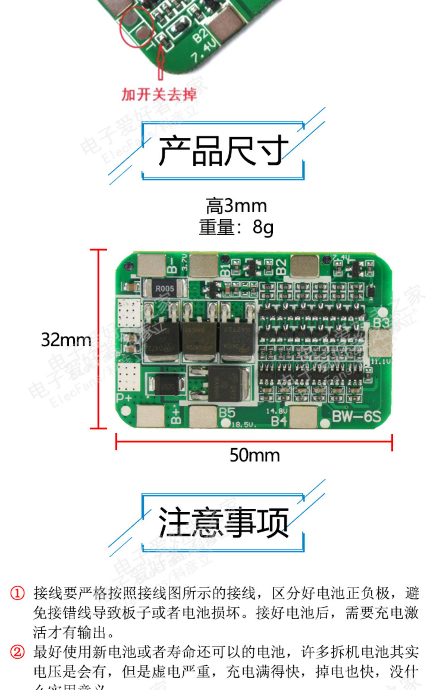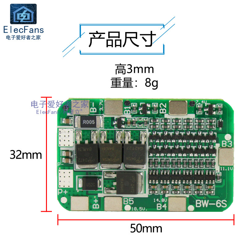 6 Строка 18650 Плата защиты от лития аккумулятора
