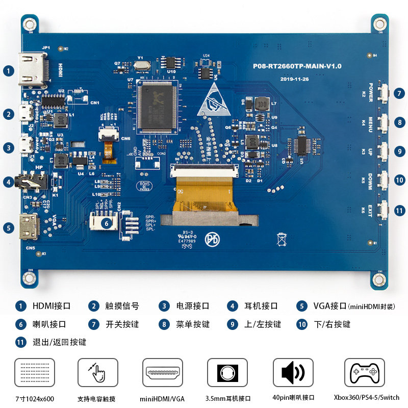 7 -INCH LCD HDMI -дисплей дисплей 2/3/4 Совместимая с генерацией B Кампания 1024*600 HD