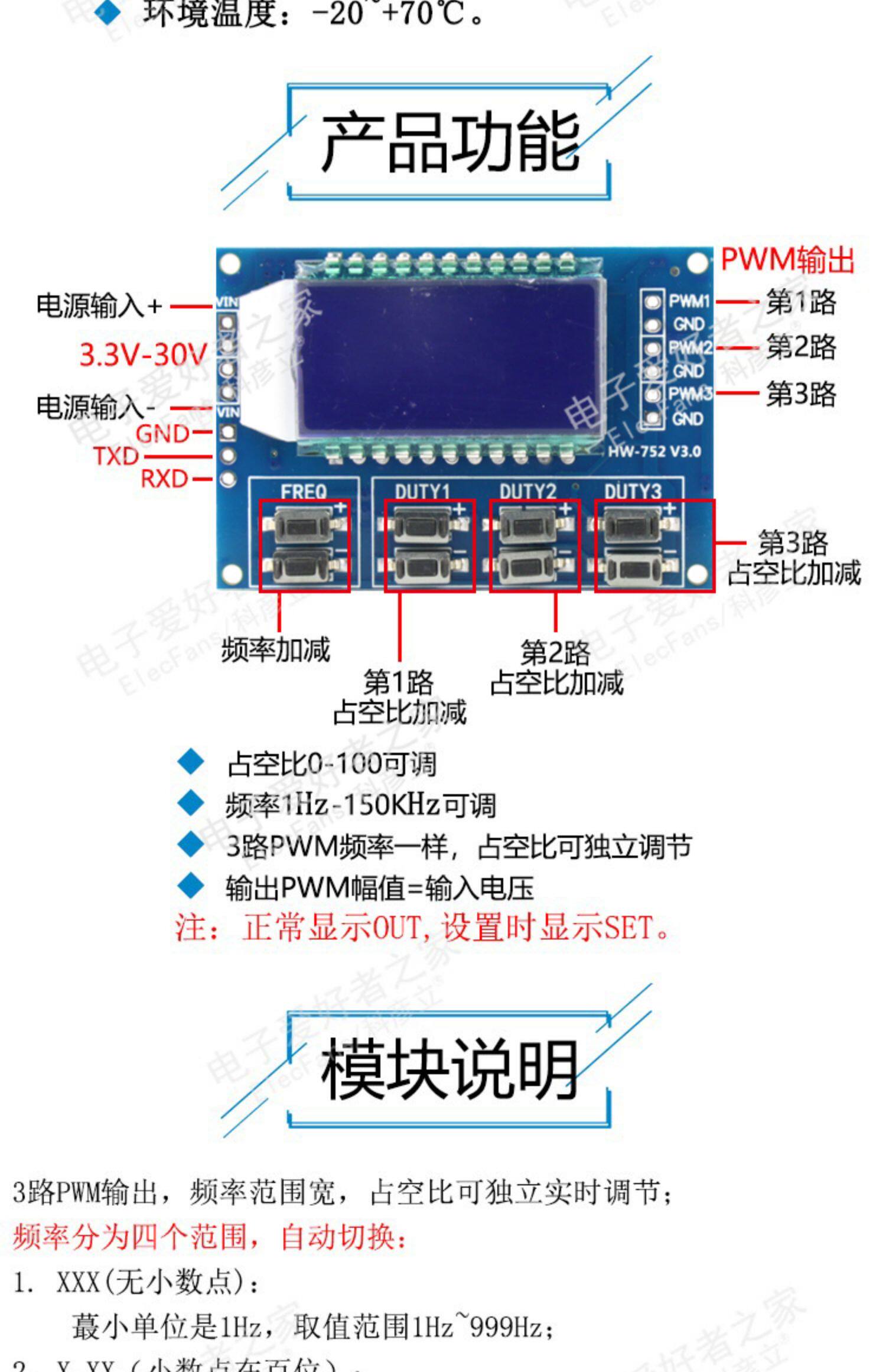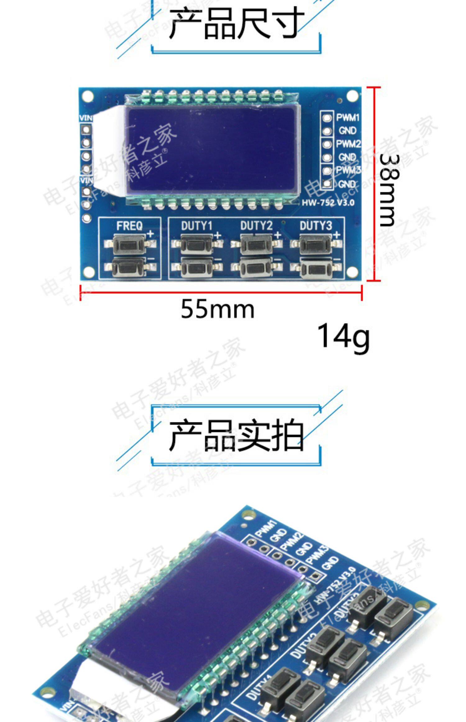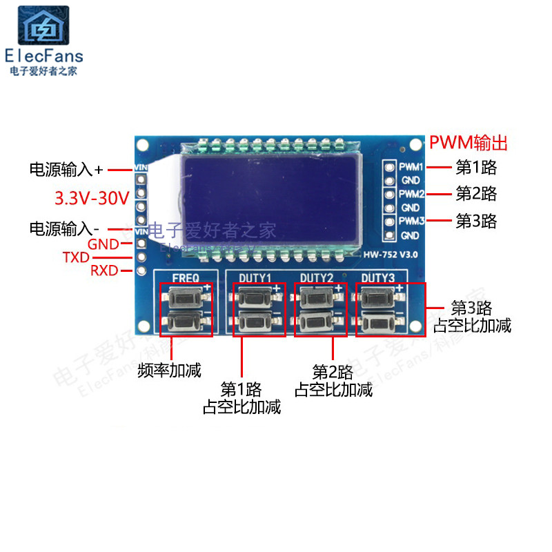 3 Дорожный ШИМ -импульс регулировка частоты модуля квадратная волна
