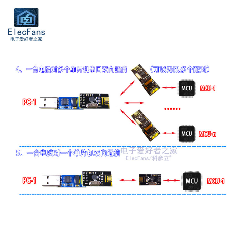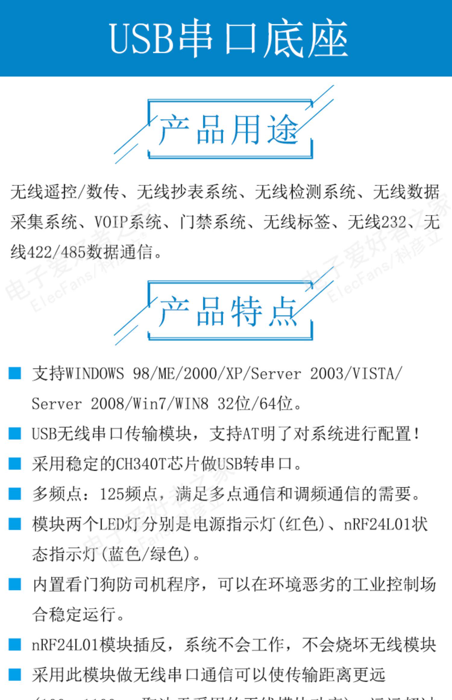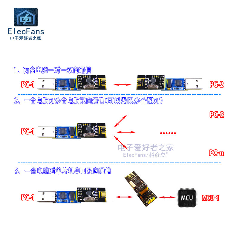 USB -последовательный модуль последовательных портов на NRF24L01+Беспроводная передача передачи передачи