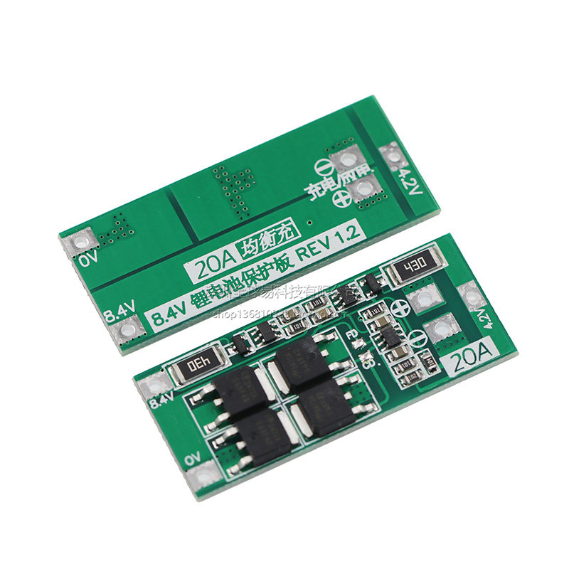 2 строки защитной платы литиевой батареи 7,4 В 8,4 В 18650 со сбалансированной версией с током 20 А