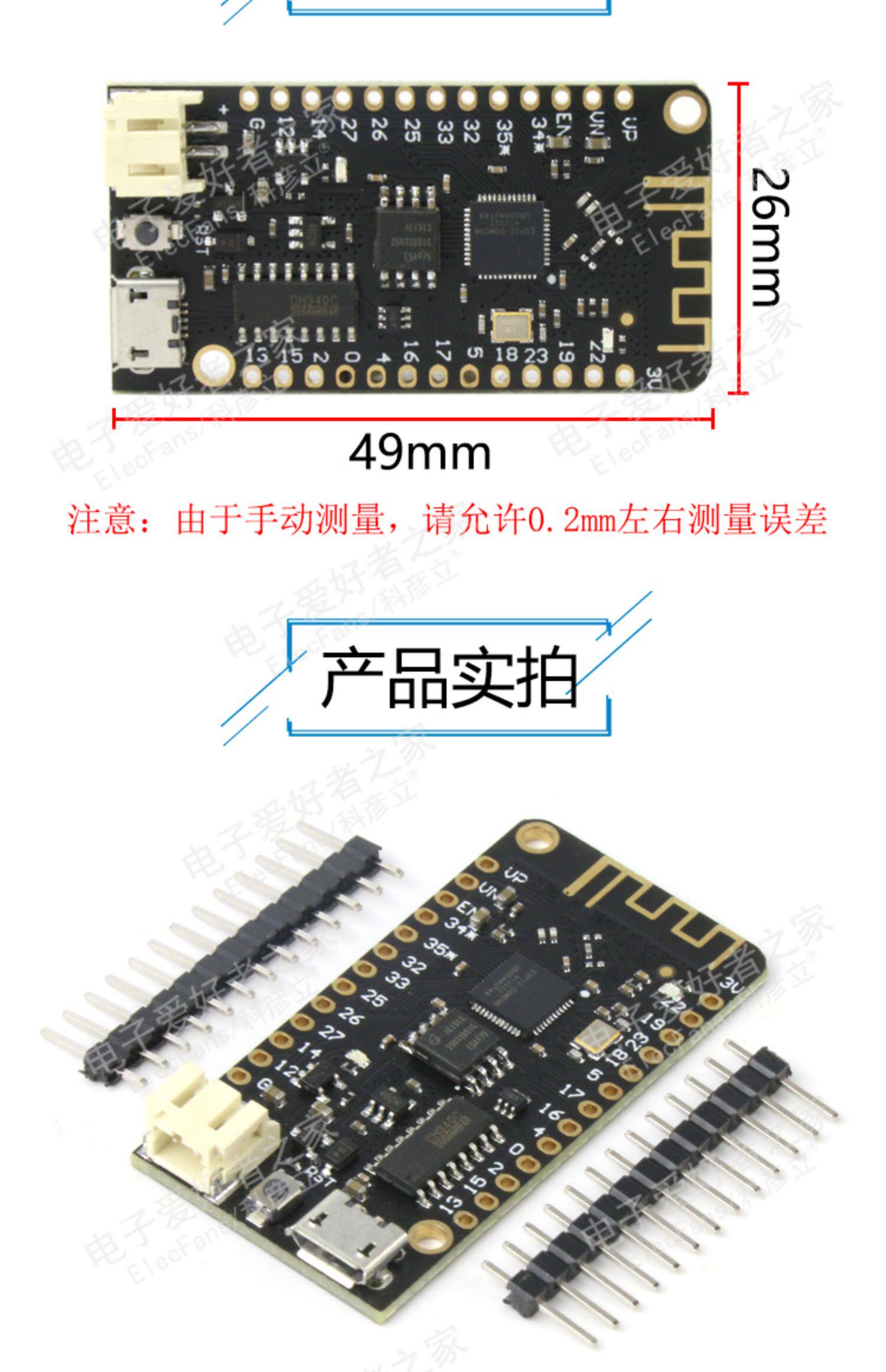ESP32 Плата разработки Wireless Wi -Fi+Bluetooth 4MB Flash Модуль IoT может подключить литиевые батареи 3,7 В