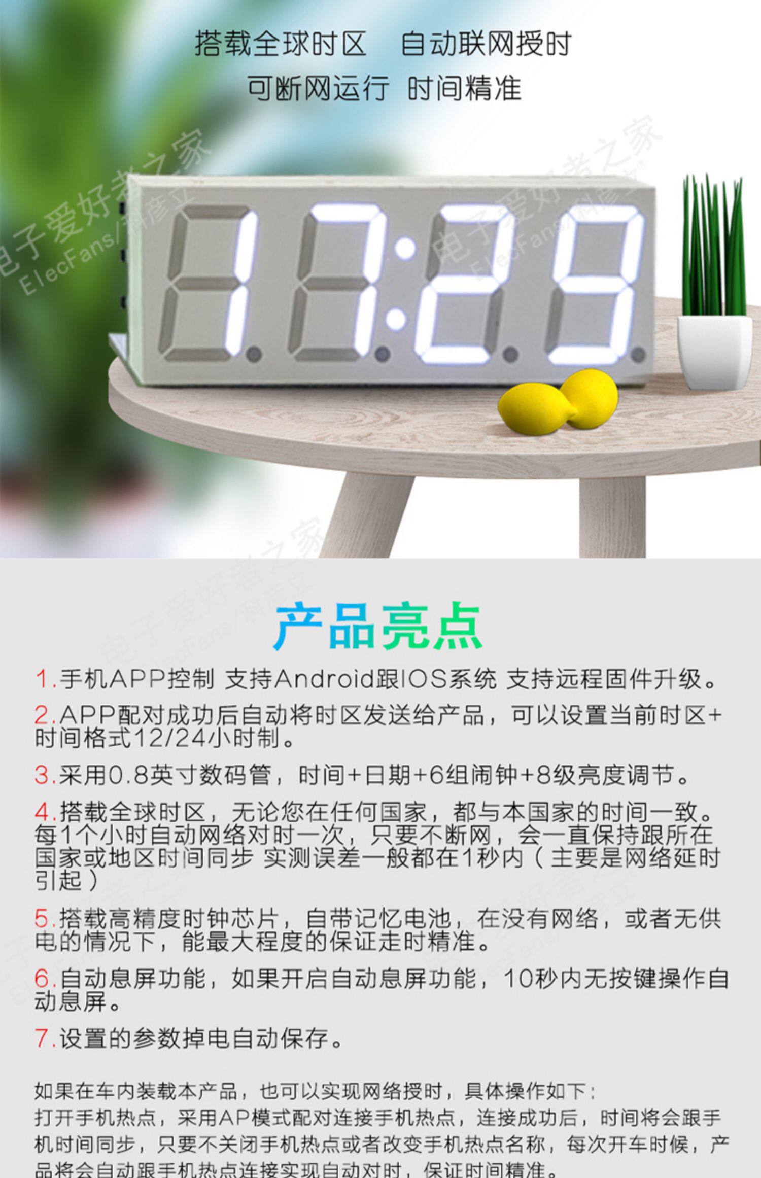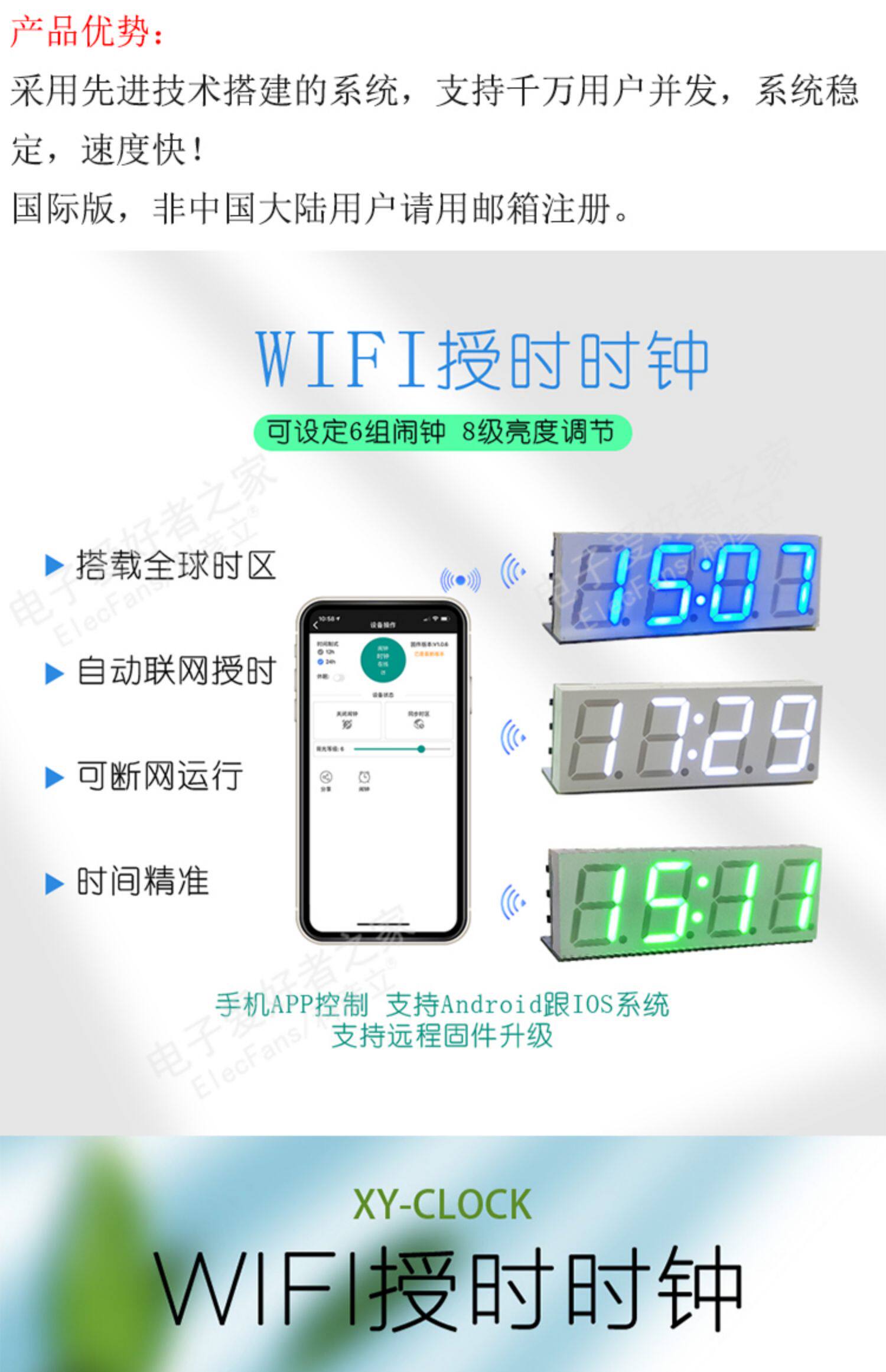 Wi -Fi Автоматическое сочетание движения модуля тактового модуля цифровая трубка светодиодная электронная часовая беспроводная сеть времени приложения интеллектуальная сеть