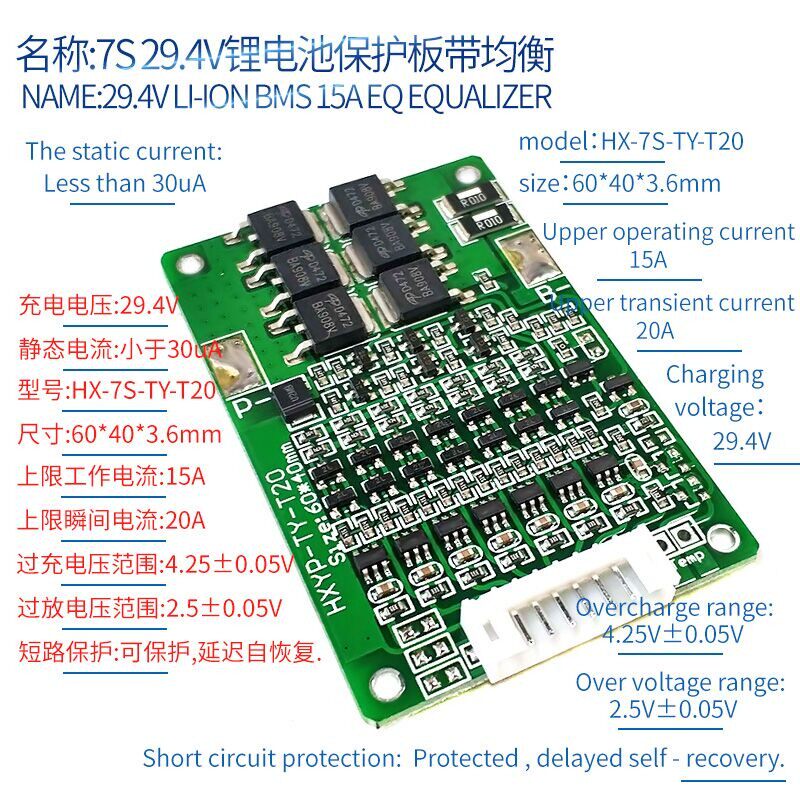 7 Строка 29 В 29,4 В Семь строк 18650 Защитная плата лития батарея Батарея Батарея Защита Заряда Защита 15А ток