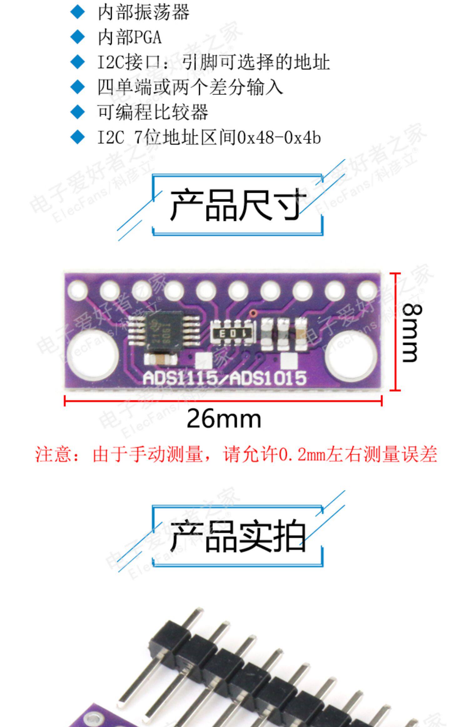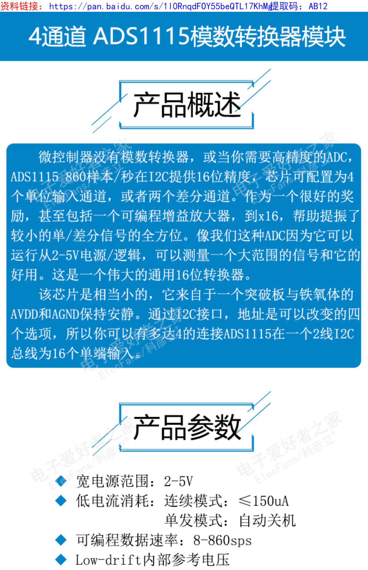 4 -канальный ADS1115 Small 16 -bit ADC High -Presision AD -режим