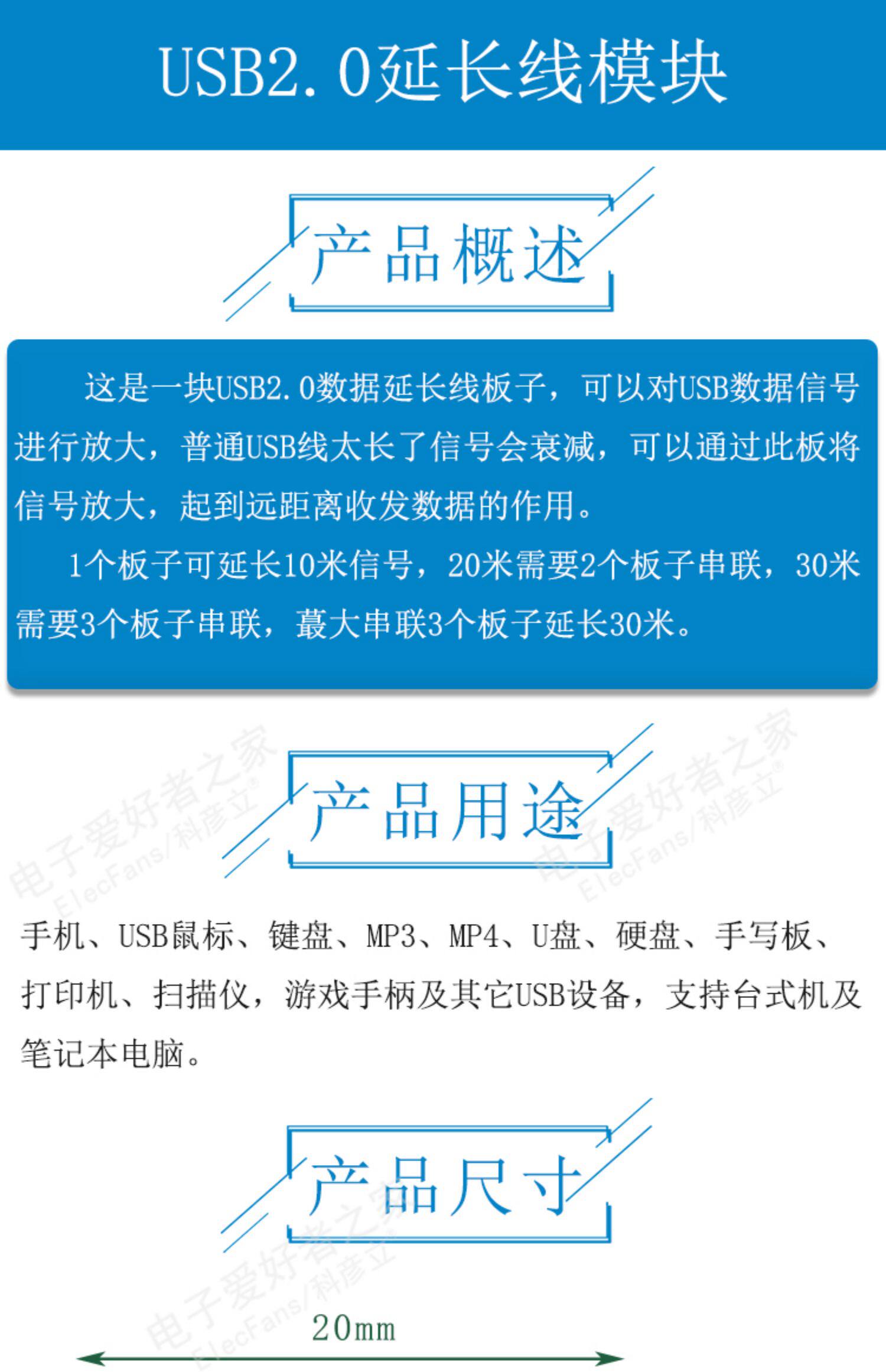 USB2.0 Расширенная плата USB -кабеля модуль сигнала кабеля данных может быть расширен и расширен 10/20/30 метров